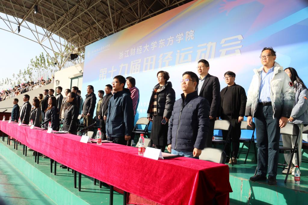 11月17日8时30分,浙江财经大学东方学院第十九届田径运动会开幕式在田径场隆重举行,院领导班子、各代表团团长、领队和有关部门领导出席本次开幕式,学院党委书记申屠莉宣布开幕。