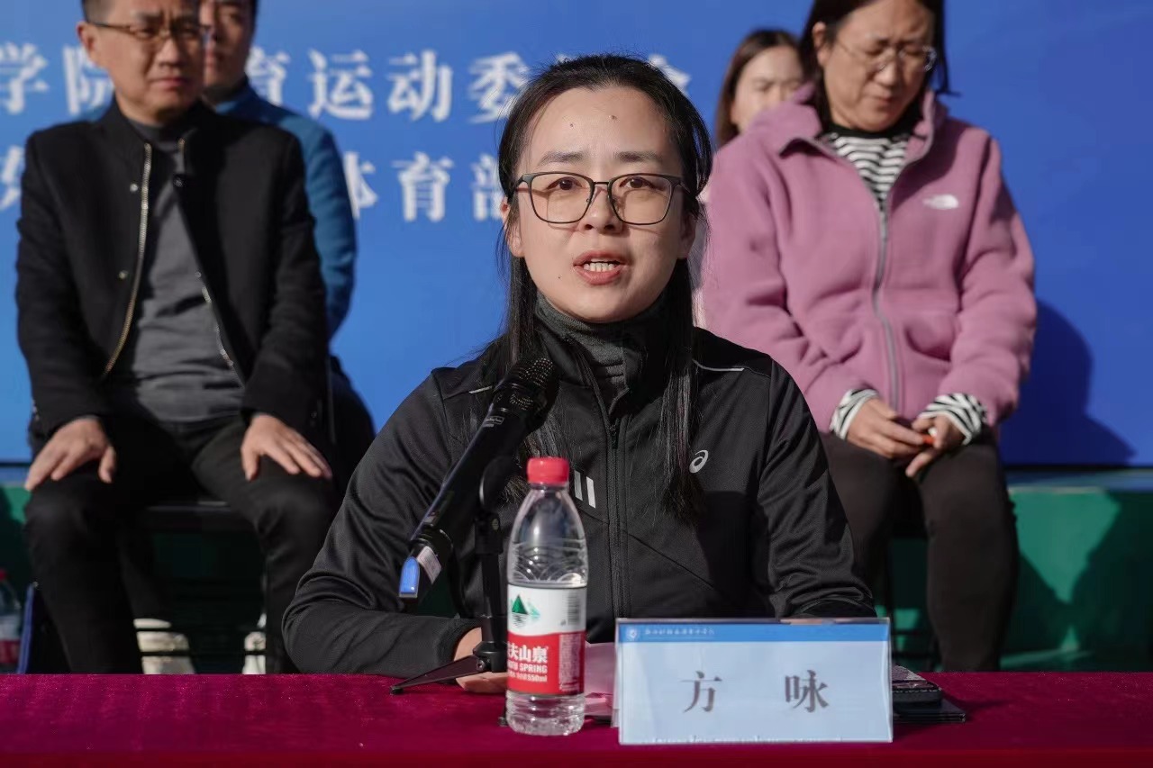 学院纪委书记方咏为运动会开幕致辞。她提出三点希望:一是希望运动员以饱满的激情和昂扬的斗志投入比赛,践行“更快、更高、更强、更团结”的体育精神,展现体育竞技的魅力;二是希望裁判员始终秉持公正、客观的态度,握好执规之尺,保障比赛的公信力,创造良好的比赛氛围;三是希望工作人员提升服务水平,牢固树立安全意识,尽心尽责,暖心服务,全力做好运动会的保障服务工作。