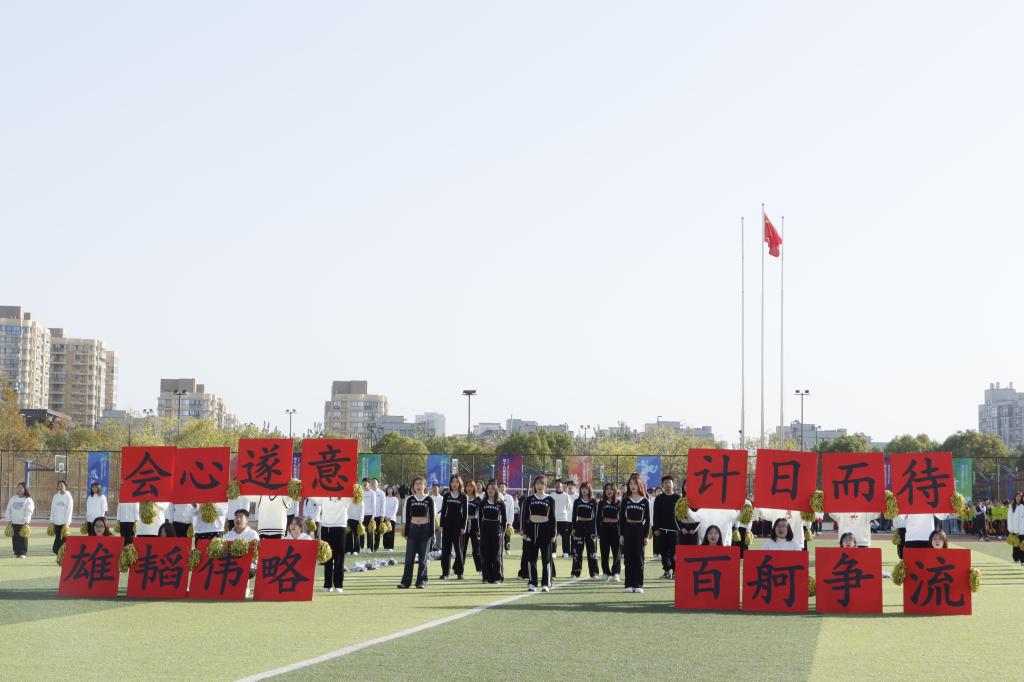 田径场上展风采,飞扬青春身矫健;竞技勇攀凌云峰,青春梦想筑辉煌。