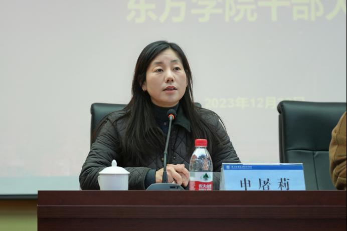 12月22日,学院在学术中心第一报告厅召开党政正职任职宣布会,童志锋同志任东方学院院长,申屠莉同志继续担任东方学院党委书记。校党委委员、副校长董进才,全体学院领导,全体中层干部,党支部书记,教代会职代会代表,高级专业技术职务人员代表,民主党派代表以及换届工作联络员等近120人参加会议。会议由申屠莉主持。