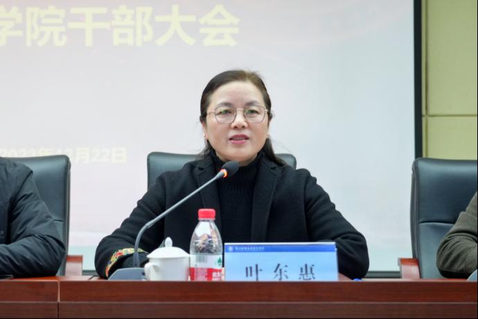 叶东惠拥护学校党委的决定,诚挚欢迎童志锋到东方学院任职。她深情回忆了在东方四年的沉甸甸的心路历程,表示在东方履职,是一生之幸。四年里,聚焦学院应用型人才培养的目标,团结带领班子坚持守正创新,聚焦主责主业,凝心聚力、共克时艰,团结拼搏、砥砺前行,统筹谋划、同心戮力,攻坚破难、稳中求进,收获了凝聚同志们心血与汗水的办学成果。在党建引领、学科建设、教育教学、人才培养、校地合作、产教融合、学院治理等方面开创了高质量内涵式发展的新局面和新成就,让她心感踏实与欣慰。她衷心感谢校党委的信任与支持,感谢东方党政班子成员、全体中层干部、全院师生对自己工作的支持。她表示,东方学院充满着战斗力、凝聚力和荣誉感,她将永远是其中的一员,将一如既往支持学院建设,并衷心希望学院在发展中再创辉煌。