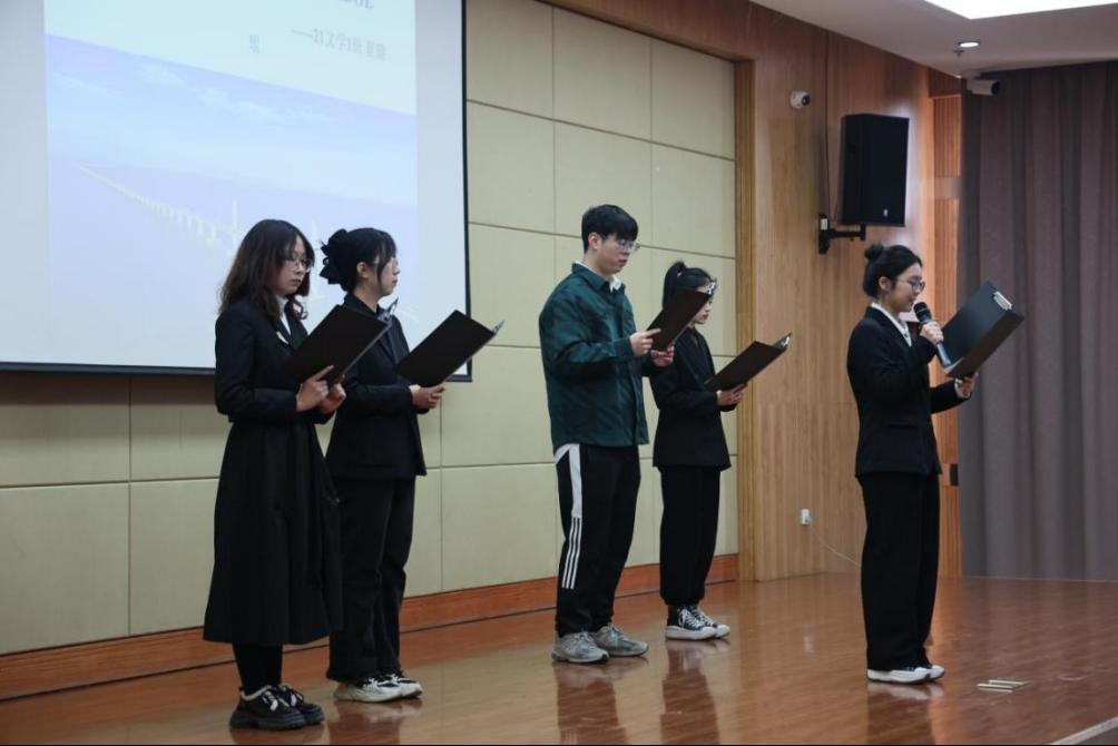 在文艺表演环节,学院学生通过英语朗诵展示了“用英语讲中国故事”活动的独特魅力。
