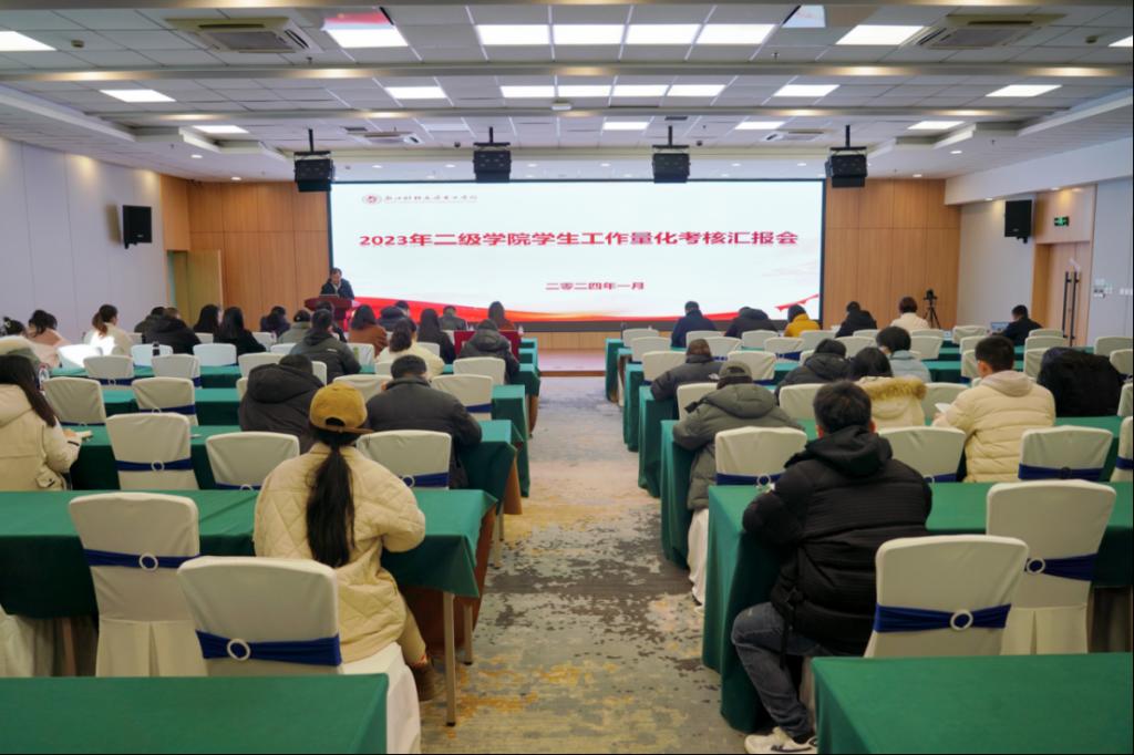 1月4日,学院在行政楼B301召开2023年学生工作量化考核汇报会。学院党委副书记林香娥,组织宣传部、学生工作部、团委、安全保卫部负责人,各二级学院分管学生工作书记(或副书记)及全体辅导员参加会议。