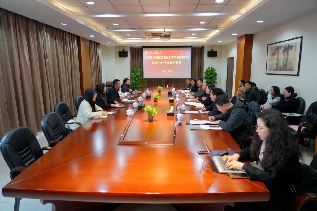 3月5日,浙江财经大学党委副书记程爽莅临学院调研指导工作,校党委组织部、党委宣传部、党委人才工作办公室等部门相关负责人陪同调研。学院领导班子成员出席座谈会。