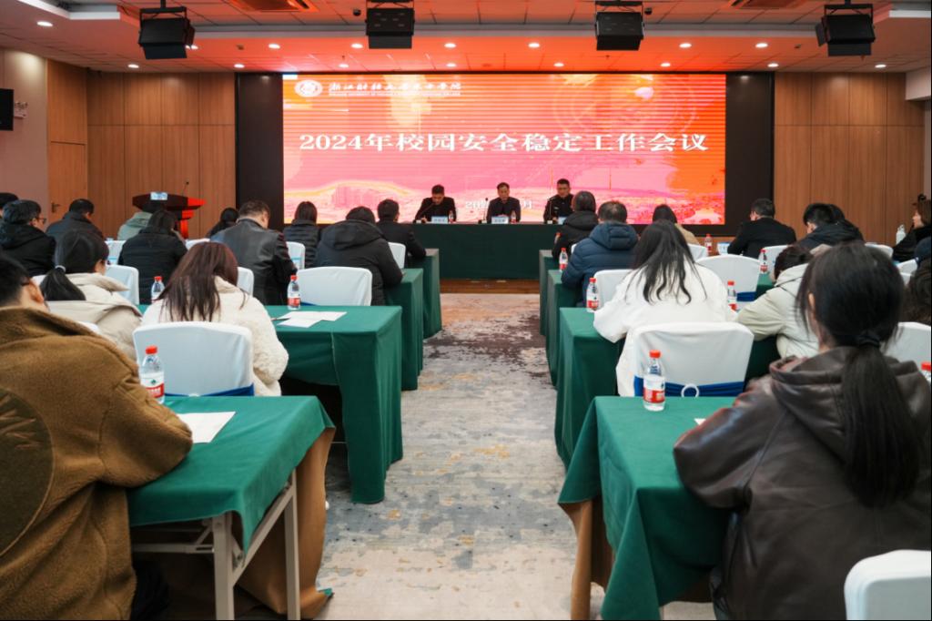 张伟飚对2023年度安全稳定工作进行了总结回顾。一年来,学院坚持提高站位、系统谋划、突出重点,精心部署护航杭州亚(残)运会“除险保安”工作,校园安全稳定,年内重大安全事故零发生,有效保障了学院高质量发展。对做好2024年度校园安全稳定工作,一要在提高安全教育的针对性上下功夫,分层分类、有针对性、场景式开展安全教育,提升教育的实效性;二要在隐患排查发现问题上下功夫,树立“发现不了问题是最大的问题”理念,做到防患于未然,确保关键环节抓得住、主要阵地守得牢;三要在加强校园风险闭环管控上下功夫,强化“隐患问题不整改就是事故”理念,完善隐患动态清零机制、工作通报机制、安全事件复盘机制;四要在推动安防设施设备升级改造上下功夫,强化要素保障,注重通过数字化手段提高安全风险防控水平;五要在提升安保队伍、专兼职消防人员能力素质上下功夫,加强工作协同,有针对性组织开展安全培训,进一步提升校园安全管理能力和治理水平。