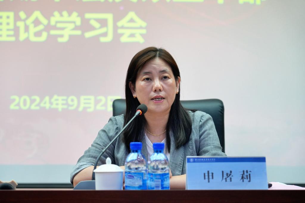 申屠莉对学院下阶段工作提出三点要求:一要坚持“顶天与立地”,以焦裕禄精神凝聚奋勇争先。要心中有党、铸干部队伍“政治忠诚”之魂,不断提高政治判断力、政治领悟力、政治执行力。要心中有责、强干部队伍“干事成事”之能,提升谋划和执行的能力,成为改革发展中最可靠的主心骨。要心中有戒,守干部队伍“严于律己”之尺。要持续深化“三风”建设,以优良的作风建设带动教风、学风建设。二要坚持“发展与稳定”,以钉钉子精神抓好改革落实。要聚焦“整体推进与重点突破”,扛改革之责任,加强党建和业务深度融合,强化引领作用,推动事业发展。要聚焦“顶层设计与基层落实”,抓改革之成效,统筹点上突破和面上集成,增强改革活力,展现改革作为。要在强化党建引领、加强人才队伍建设、优化学科专业布局、激发开放办学活力、健全服务保障体系等方面下功夫,推进学院高质量内涵式发展。三是要坚持“守正与创新”,以教育家精神引领队伍建设。要守正为本,驱动“大思政课”引擎,夯实立德树人关键底座。强化教育家精神引领,不断加强师德师风建设。要以创新为魂,坚持“输血”“造血”并举,提升人才队伍建设。要增强输血功能,全方位引进、培养、用好人才,同时盘活师资队伍存量,提升造血能力,加强学院“三支队伍”建设。