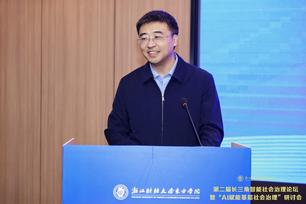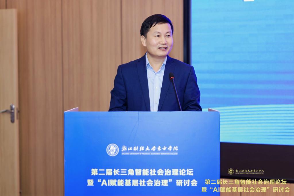 童志锋代表学院向与会嘉宾致以诚挚欢迎。他指出,面对基层治理中综合性、复杂性的现实问题,必须依靠跨学科的智慧协同攻关。为此,学院在母体“新财经战略”的指引和嘉兴、海宁等地方政府支持下,积极推进“四新”体系建设,实施“1234”发展战略,持续强化应用型人才培养。本次论坛汇聚学界与业界智慧,旨在打破学科壁垒,共同探讨智能社会治理中的理论、技术与伦理难题,探索AI在基层更高效、更普惠的应用路径。学院也将以此为契机深化产教融合,着力培养“懂技术、通治理”的复合型人才,为推动长三角乃至全国基层治理现代化贡献力量。
