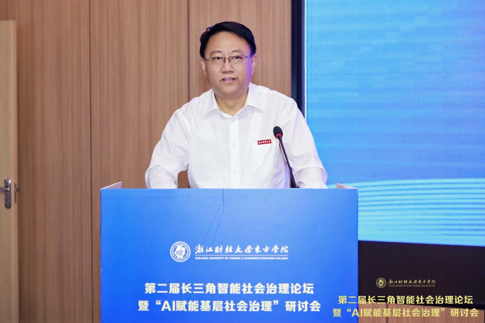 李占荣代表学校向远道而来的各位专家学者和嘉宾朋友表示欢迎!他指出,长三角地区正处于推动社会治理现代化的关键阶段,人工智能、大数据等技术为破解基层治理难题、提升治理效能提供了全新路径。本次论坛以“AI赋能基层社会治理”为核心,既聚焦技术应用的“最新进展”,也关注治理变革的“深远影响”,议题精准、意义重大。他希望,以本次论坛为契机,浙江财经大学、浙江财经大学东方学院能与各位嘉宾、各兄弟单位建立更紧密的合作关系,在学科建设、科研创新、人才培养等领域深化合作、携手共进。