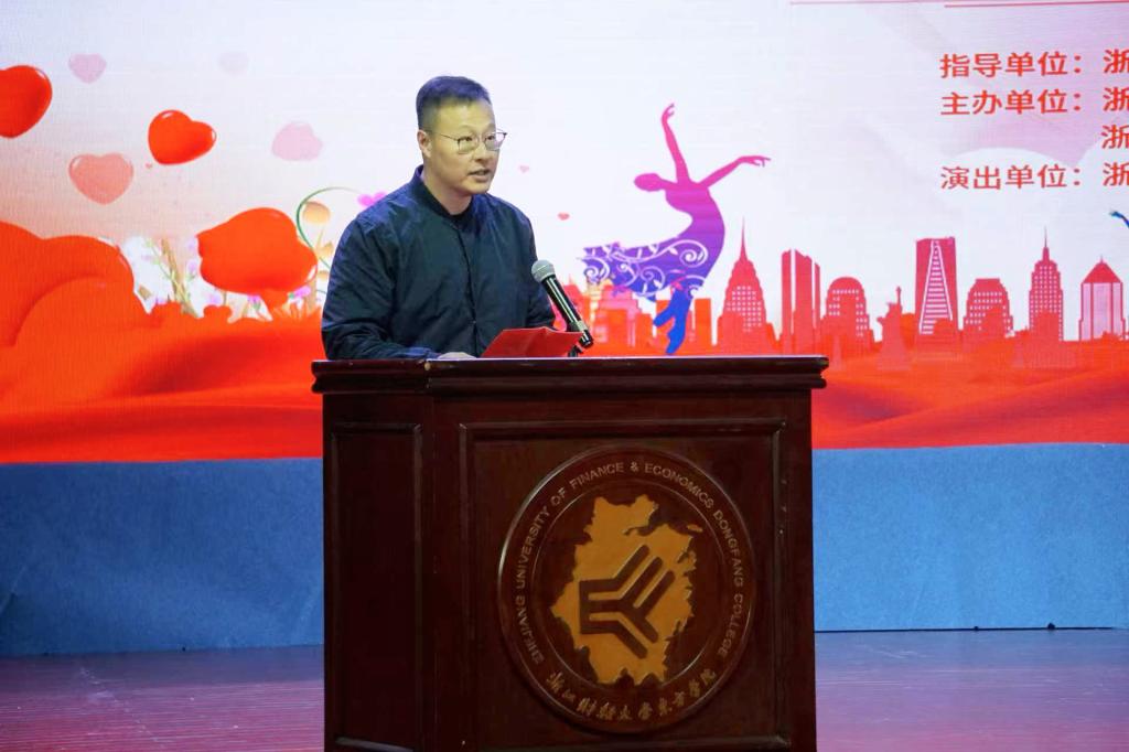 汪风易在致辞中表示,这是金盾红丝带艺术团第二次走进东方学院。艺术团始终以公益为桥梁,将艺术之美与健康理念相融合,成为校园中流动的美育课堂。他强调,党的二十届四中全会明确提出“激发全民族文化创新创造活力,繁荣发展社会主义文化”。在“十五五”规划谋篇布局的关键节点,学院举办此次活动,正是希望同学们在艺术的旋律中感知文化温度,在表演与鉴赏中提升审美素养,在情感共鸣中树立文化自信,真正实现“以美育德、以美启智”的育人目标。
