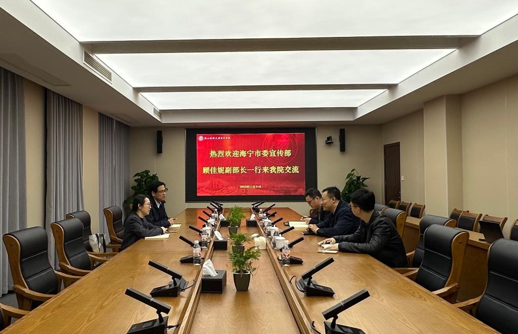 11月24日,海宁市委宣传部副部长顾佳妮一行来学院调研交流,学院党委副书记汪风易,学工部、团委等相关部门负责人参与座谈。