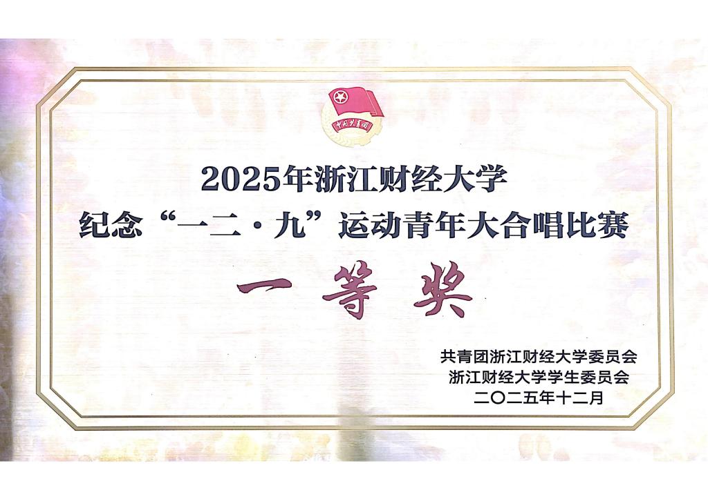 12月9日,浙江财经大学“青春承赤心崇实颂长歌”纪念“一二·九”运动青年大合唱比赛在下沙校区举行。学院“一个声音”合唱团凭借作品《愿你再见我时》,在众多优秀队伍中脱颖而出,荣获大赛一等奖、优秀组织奖,展现了东方学子昂扬的精神风貌与卓越的艺术素养。