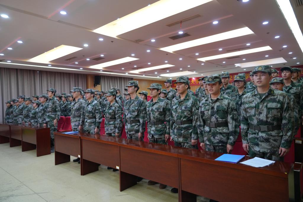 汪风易指出,学生军训是落实立德树人根本任务、培育时代新人的战略举措,更是为民族复兴筑牢青年国防根基的关键一课。他提到,全体教官以“迷彩担当”成为军训场的“硬核榜样”,用多次带训的坚守诠释奉献,用严爱相济的细节传递温度,用以身作则的作风彰显本色,将军人精神与青春担当融入带训实践。他寄语全体在场学生:要本色不改,守纪律、讲作风,将军训中的纪律作风转化为日常习惯;要示范引领,站出来、带起来,在集体中主动担当、带动他人;要珍惜时光,抓学习、练本领,将军训韧劲融入专业学习,练就过硬本领。