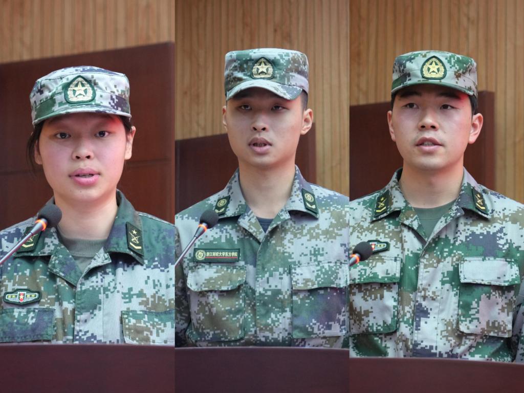 优秀教官代表徐天翼、吴语秋、陈国涛三位同学依次发言,分享带训过程中的责任坚守、严爱相济的育人心得与国防教育的使命担当,真挚的分享引发全场共鸣。
