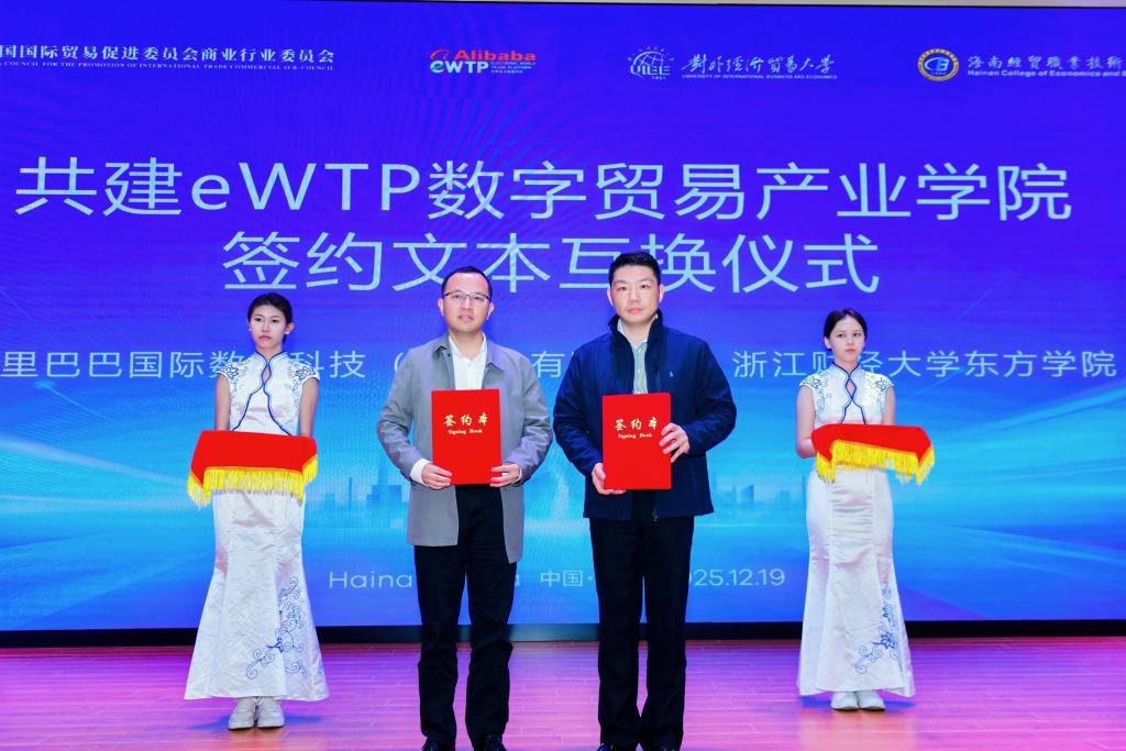 年会发布了全球贸易数字化产教融合发展倡议。为积极响应倡议,童志锋代表学院与阿里巴巴国际数字商业集团举行共建eWTP数字贸易产业学院签约文本互换仪式,标志着双方在共建数字贸易人才培养体系方面取得实质性进展。该倡议聚焦共筑育人生态、推动标准共建、赋能区域经济等重点任务,旨在深化产教融合,对接产业前沿,服务国家战略。