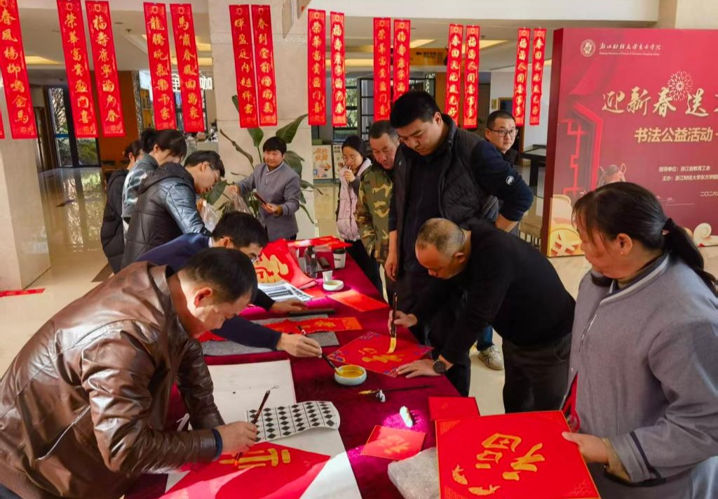 1月12日,学院于学术中心成功举办“迎新春、送万福、进万家”主题活动。学院领导班子成员携手教职工书法协会费松天、方志勇、蒋超三位老师,与广大教工共赴墨香氤氲的文化之约,为大家送上真挚的新春祝福。