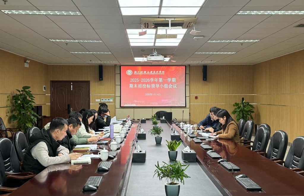 1月14日,学院2025-2026学年第一学期期末招投标工作领导小组会议在行政楼A216会议室召开。会议由招投标工作领导小组组长、学院副院长高贺主持,全体招投标工作领导小组成员参会。