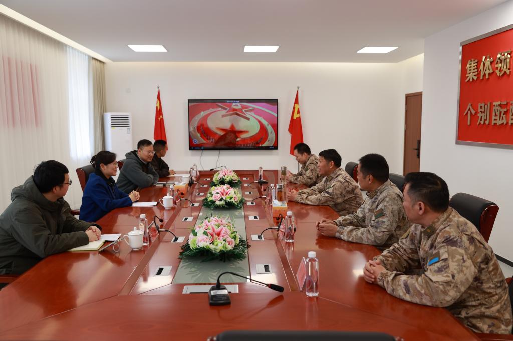 1月19日,学院党委书记童玉玲、党委副书记汪风易带队走访海宁市人武部。市人武部领导李宏林、许亚民热情接待并主持座谈。