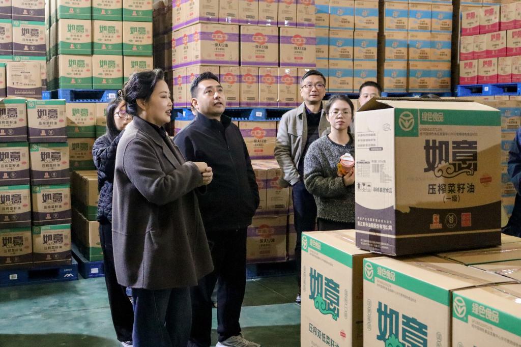 考察组深入企业仓储与物流区域,实地察看米、面、油等食材的储存环境、堆放规范及运输管理流程,详细了解产品质量、品类规格及出入库管理情况,直观掌握企业仓储管理与物资调配能力。