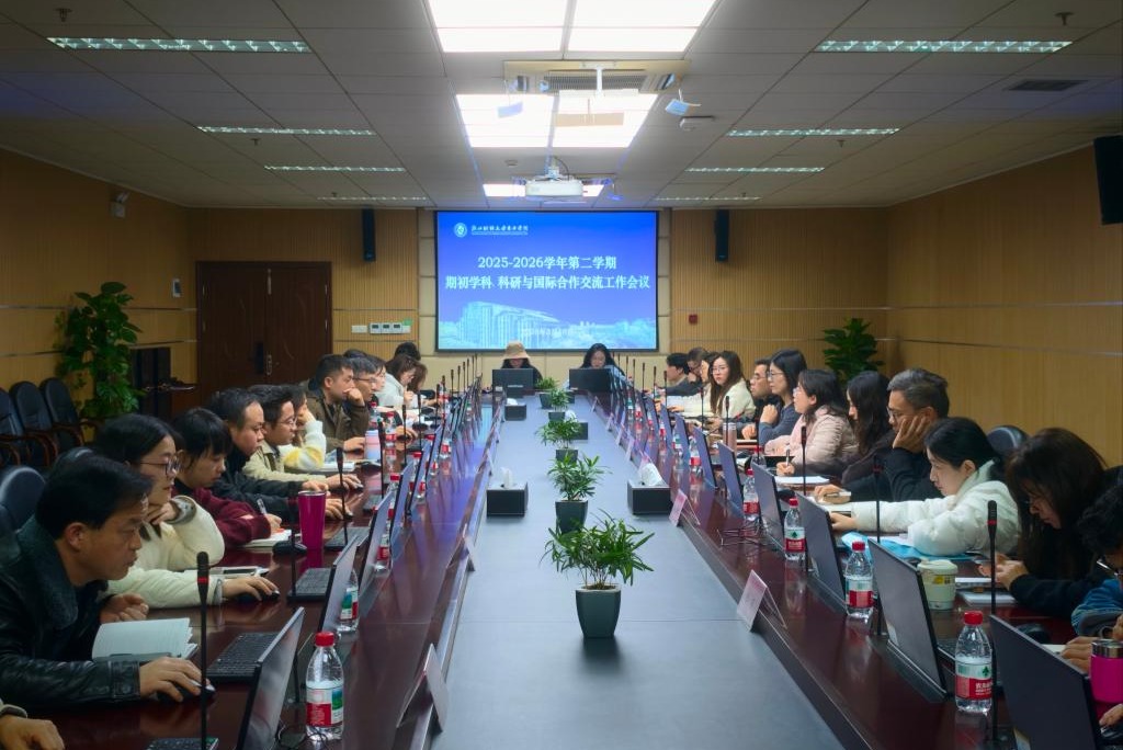 会上,姚莉对上年度工作取得的进展和成果给予充分的肯定,并对本学期学科科研和国际交流工作提出了要求。基于高等院校教育改革现状,姚莉围绕“十五五”发展目标与新学期工作重点,强调要做好参与“高校激烈竞争”的充分准备,坚决提升科研工作的质量和实效,营造风清气正、追求卓越的科研氛围,构建充满活力的国际交流合作生态。2026年学科、科研和国际交流的重点工作将紧扣“聚焦重点、攻克难点、打造亮点”三大思路推进:一是聚焦重点,夯实发展根基。学科上凝练研究方向、培育青年教师、活跃学术氛围;国际交流以短期项目为突破口,扩大学生参与覆盖面,逐步提升交流层次。二是攻克难点,打通关键堵点。科研方面推动有组织科研下沉,开展全链条课题申报辅导,提升高级别项目命中率;国际交流应着力解决各学院发展不均衡问题,力争实现各二级学院参与学生人数进一步突破。三是打造亮点,塑造特色品牌。推动科研成果反哺教学,构建“科研-教学-育人”良性循环;启动国际交流“一院一品”培育工程,打造特色精品项目,提升学院国际影响力。