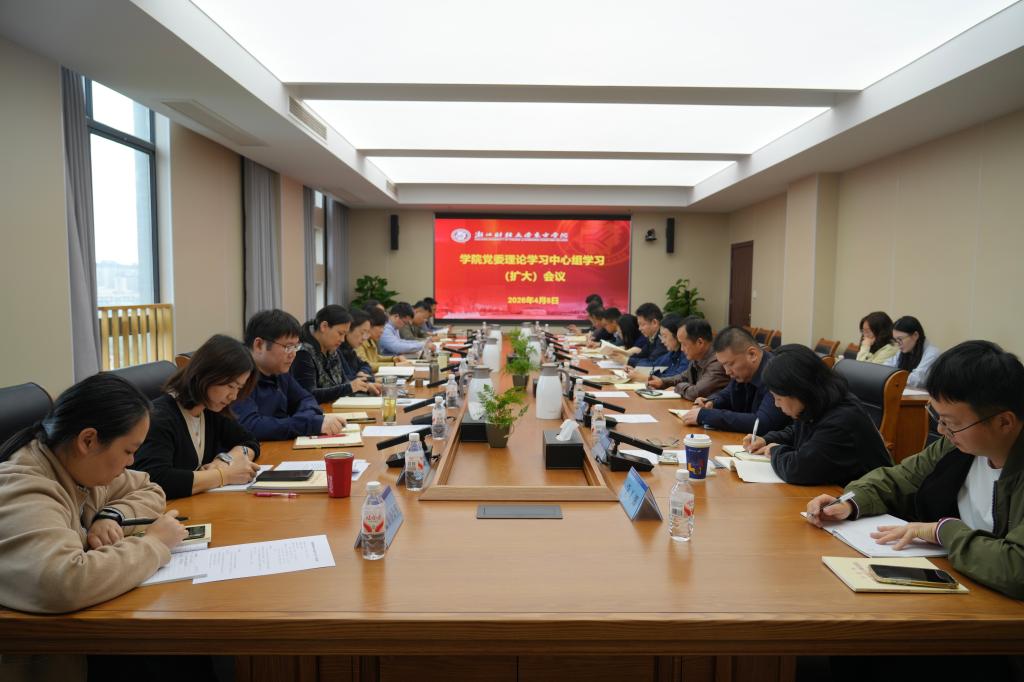 4月8日,学院召开党委理论学习中心组(扩大)学习会,深入学习贯彻习近平总书记关于树立和践行正确政绩观的重要论述。学院党委书记童玉玲主持会议并讲话,中心组全体成员参加学习,党群部门负责人、各二级党总支书记列席会议。