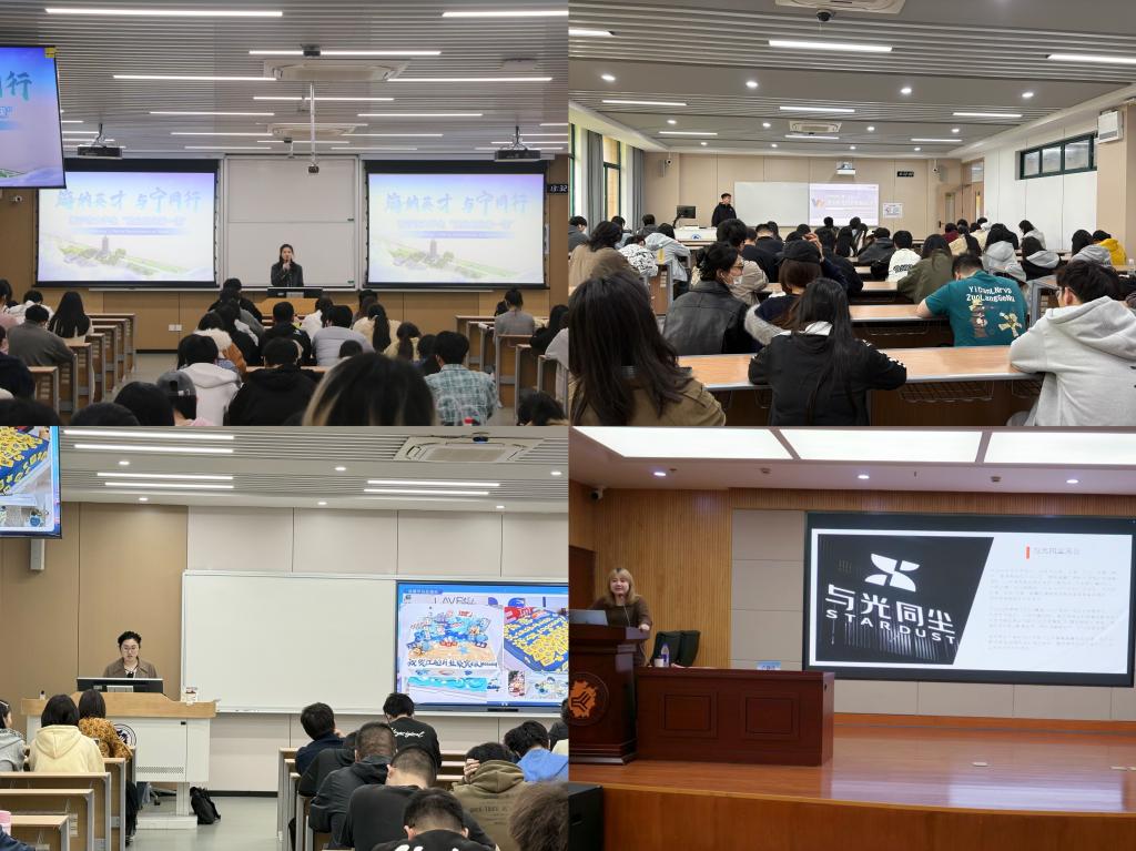 借助春季招聘会的火热求职氛围,海宁市就业管理服务中心和多家用人单位也在招聘会当天来学院开展就业创业宣讲和企业招聘宣讲活动。海宁市就业管理服务中心副主任应笑蓉带来大学生留海“就业创业第一课”,详细解读海宁就业创业与人才扶持政策,坚定学生留海发展信心。来自台州银行嘉兴分行、无忧传媒、宁波中升国际货运代理有限公司、与光同行(杭州)文化科技有限公司的企业负责人带来企业专场宣讲,现场开通简历投递与面试绿色通道,为毕业生搭建高效就业“快车道”。