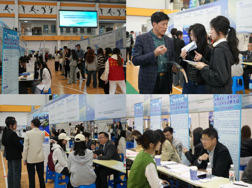 为深入贯彻党中央、国务院关于做好高校毕业生就业工作的决策部署,扎实推进学院2026届毕业生就业工作,4月14日,学院春季综合招聘会暨2026年杭州市大学生春季就业见习招聘会在学院体育馆顺利举办。学院领导高度重视招聘会各项准备工作,推动招聘会部署落实。院长童志锋亲临招聘会现场巡展指导。