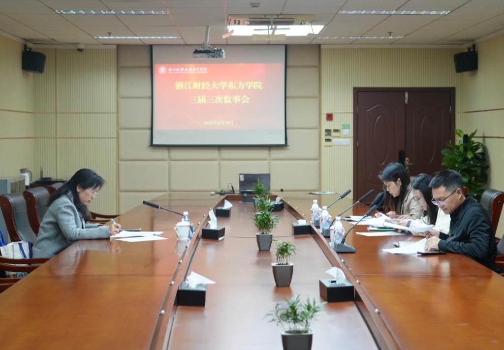学院召开三届三次监事会会议 时间:2026-04-29来源:党院办 4月29日,学院召开第三届监事会第三次会议。学院监事会成员出席会议,相关部门负责人列席会议。会议由学院监事会监事长祝红霞主持。 会议审查通过了《关于浙江财经大学东方学院2025年度财务决算的议案》和《关于浙江财经大学东方学院2026年度财务预算的议案》。(文:王海焦/摄:王周娈) 上一篇:学院召开五届三次董事会会议 下一篇:喜报!学院学生作品获IIFSA国际AI短片电影大赛“AI卓越创新”奖 【关闭】
