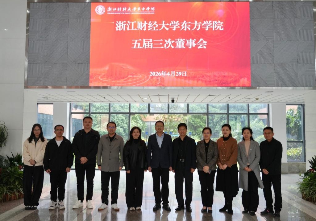 会议第一阶段,董事会听取、审议并通过了《关于浙江财经大学东方学院2025年度工作总结的议案》《关于浙江财经大学东方学院2025年度财务决算的议案》,会议对学院2025年的工作和成绩的取得给予了充分肯定。董事会听取、审议并通过了《关于调整浙江财经大学东方学院董事会董事的议案》,选举童玉玲同志为学院第五届董事会董事。