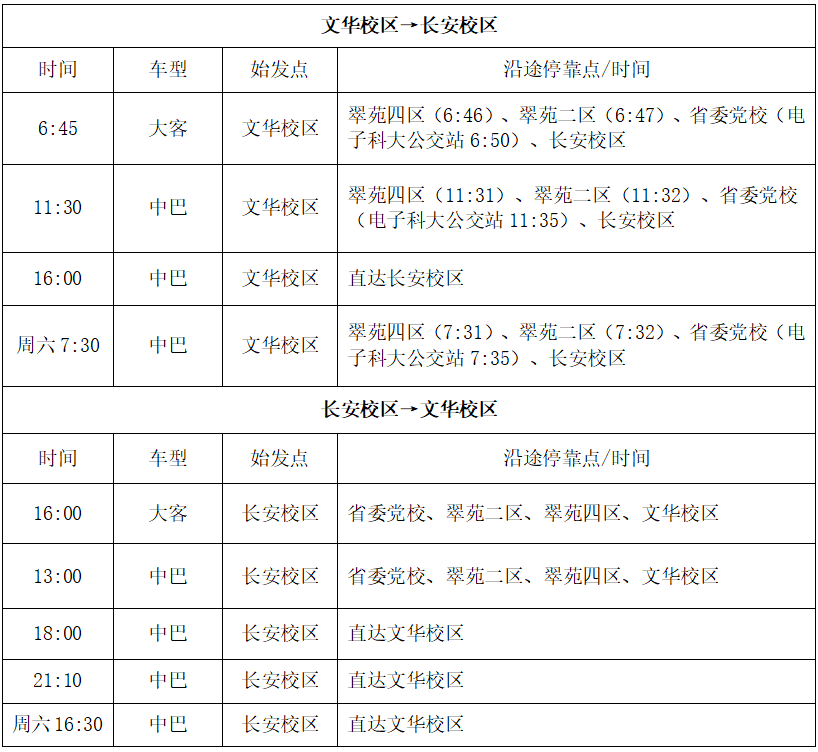 班车时间表 时间:2021-03-06来源: 2020-2021学年第二学期班车时刻表 2021年3月8日起执行 说明: 1、自行解决交通如需乘坐班车的人员请提前二天报后勤基建部。 2、车辆调度电话:87571235。 上一篇:班车时间表 下一篇:班车时间表 【关闭】