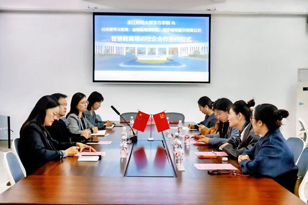 4月22日,外国语学院智慧教育培训校企合作签约仪式在7号教学楼520会议室顺利举行。外国语学院相关负责人及杭州爱秀云教育科技有限公司、海宁金钥匙培训学校、海宁裕来图书有限公司相关负责人共同出席活动。