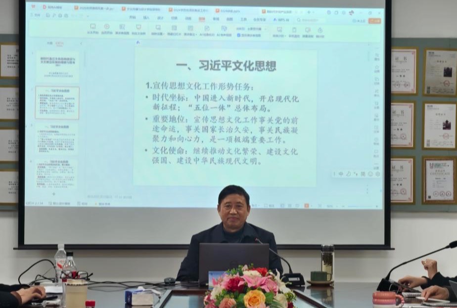 近日,文设学院特邀原浙江省委宣传部文艺处处长、省文明办副主任刘如文作了题为《新时代浙江文化高地建设与文艺繁荣发展的观察与思考》专题讲座,文设学院教工党员、学生辅导员和新传学科教师到场学习。