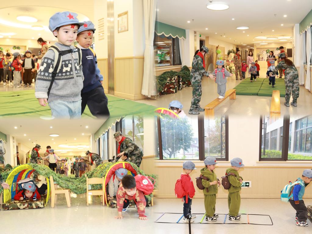 “小红军”们精神抖擞,依次闯过关卡,沉浸式感受“长征”的艰辛与胜利的喜悦。活动还特别设计“PLA”造型集体合影,让仪式感与爱国情怀深深印在幼儿心中。