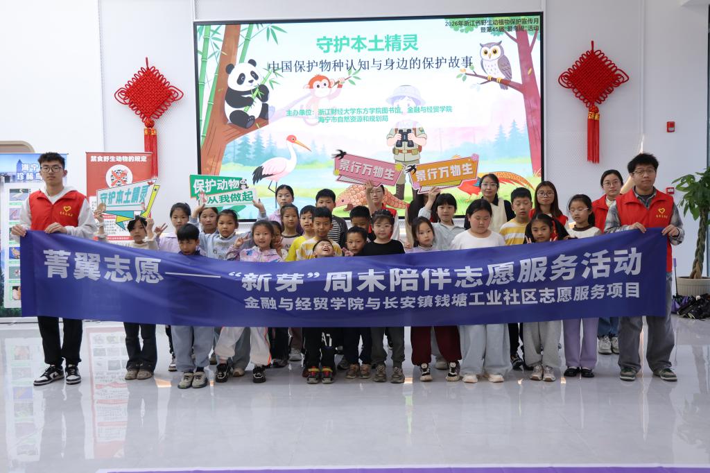 4月11日,“守护本土精灵,共绘生态画卷——中国保护物种认知与身边的保护故事”主题科普活动在钱塘产业社区举行。活动由学院图书馆、金融与经贸学院与海宁市自然资源和规划局共同主办,融合趣味讲解、互动实践与情景体验,将红尾伯劳、鹊鸲、戴胜等校园内常见的“三有”保护动物转化为生动的生态教育素材,让小学生在沉浸式体验中理解生物多样性保护的意义,也为海宁本土野生动植物保护科普工作注入了青春活力。